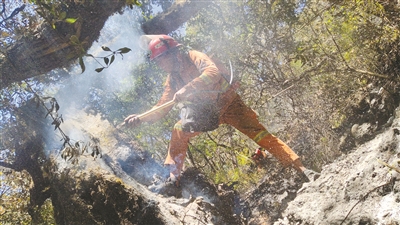 撲火隊員像巖羊一樣,在懸崖峭壁上行軍作戰(zhàn)