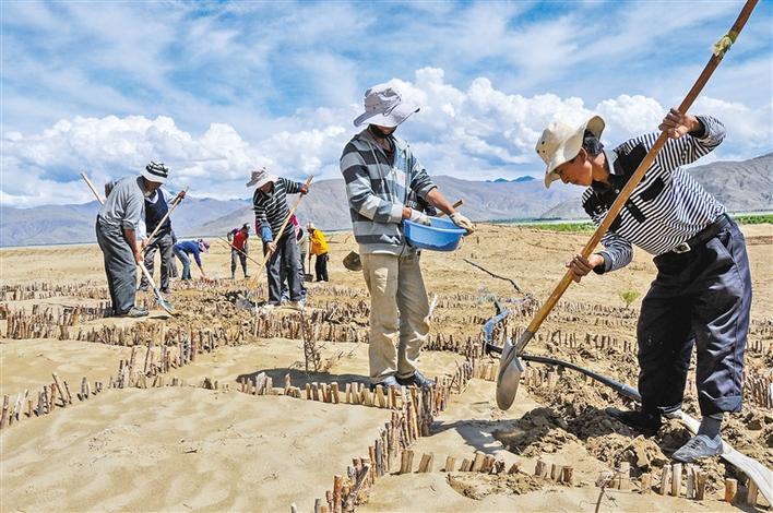 近年來,山南市全國防沙治沙綜合示范區(qū)堅持科學研究和技術(shù)推廣,探索出西藏“一江兩河”流域完善的“截沙源、降風速、固流沙、增植被”的河谷防沙治沙技術(shù)體系,為我區(qū)防沙治沙提供了成功的技術(shù)模式。該示范區(qū)已成為西藏沙生植物園、防沙治沙科普基地、防沙治沙科研成果試驗示范推廣基地,對深入開展西藏防沙治沙、筑牢國家生態(tài)安全屏障,提供了良好的技術(shù)支撐和科研示范效果。