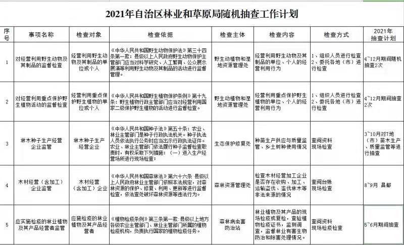2021年自治區(qū)林業(yè)和草原局隨機抽查工作計劃