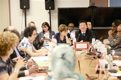 會(huì)議上,中方代表介紹了中國(guó)防沙治沙與國(guó)際合作情況和庫(kù)布其以政府支持、企業(yè)投資、民眾參與的“庫(kù)布其治沙模式”。(劉昕)