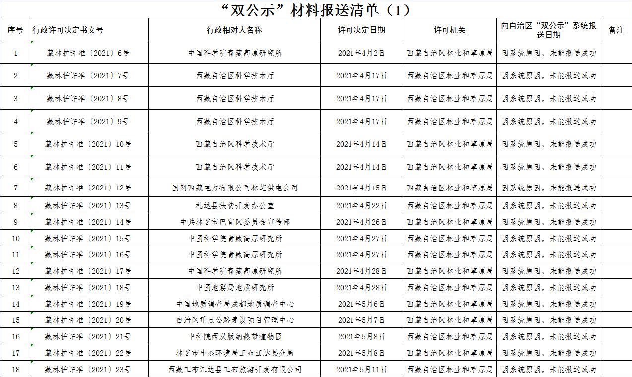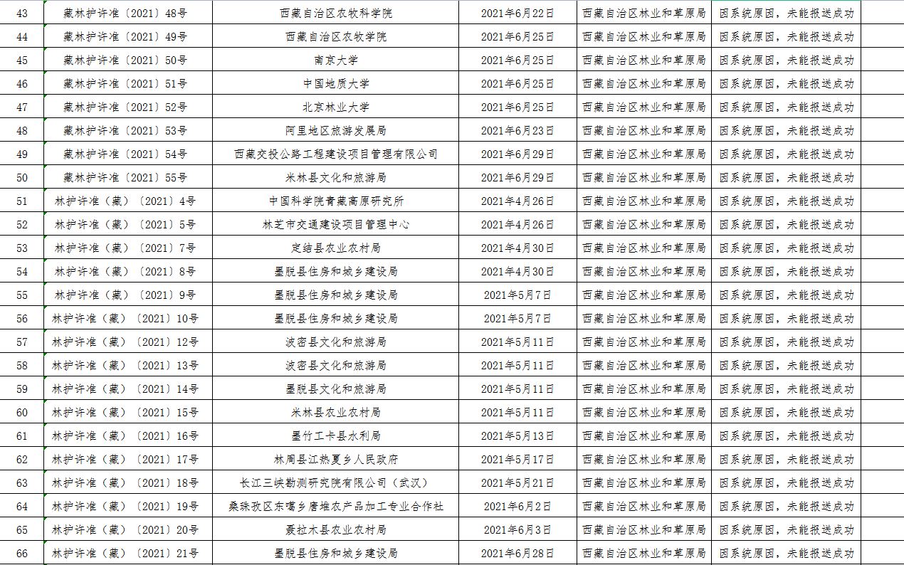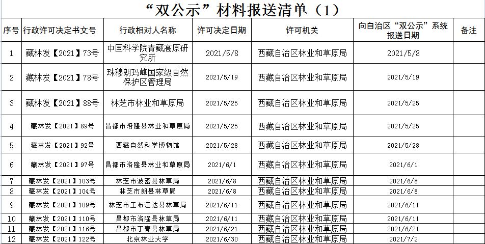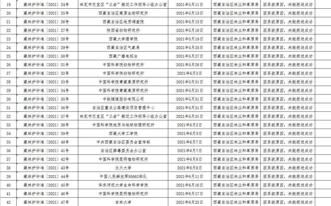 野生動植物和濕地資源管理處行政許可臺賬公示如下: