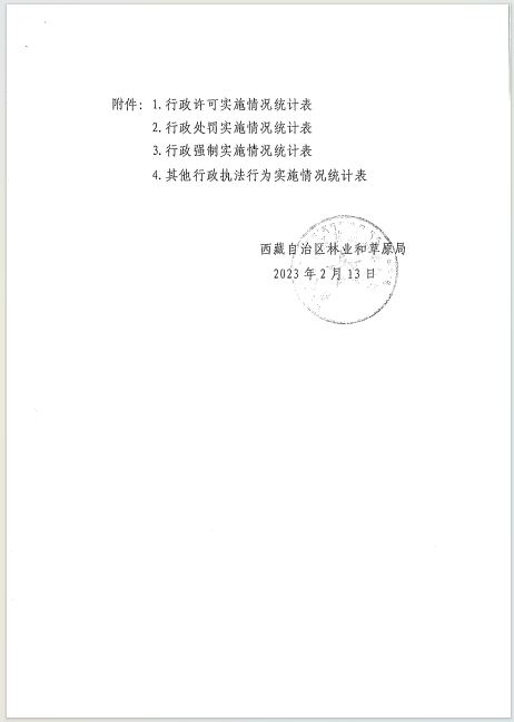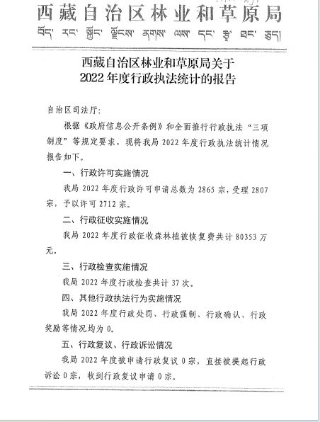 西藏自治區(qū)林業(yè)和草原局關(guān)于2022年度行政執(zhí)法統(tǒng)計的報告