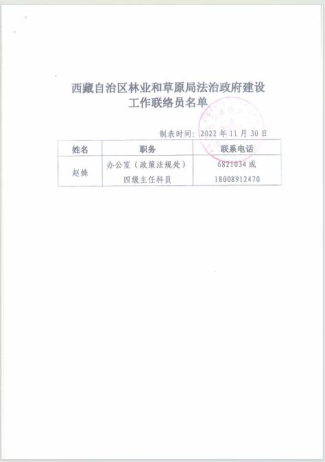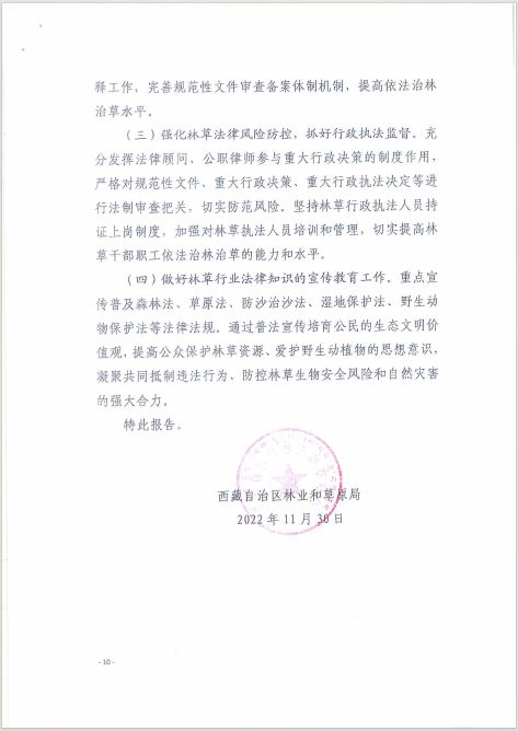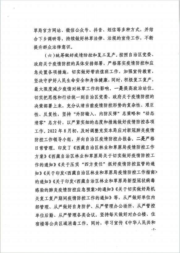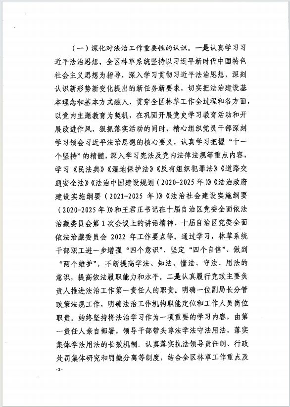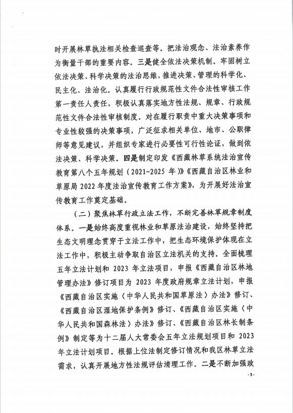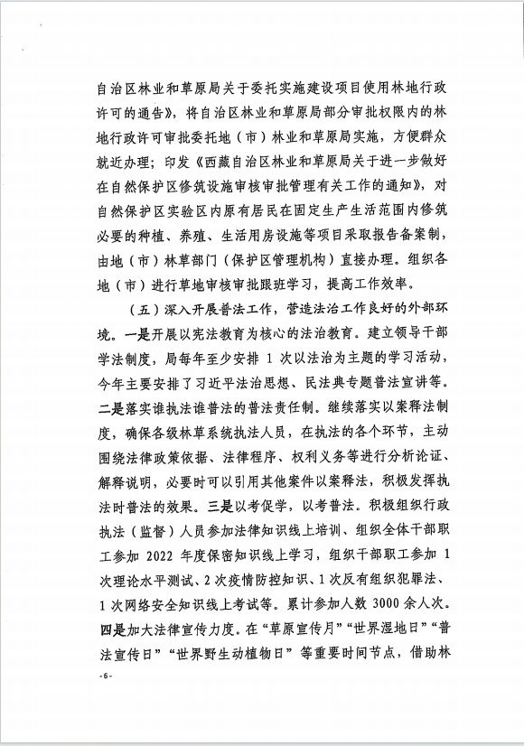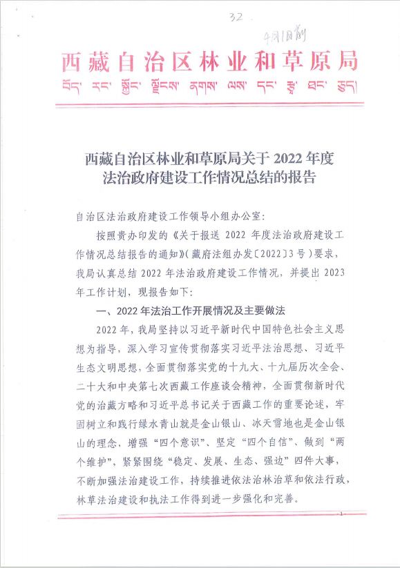 西藏自治區(qū)林業(yè)和草原局關于2022年度法治政府建設工作情況總結的報告