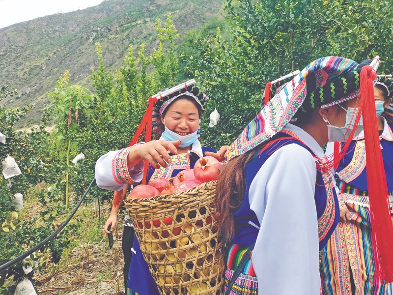 圖為9月22日,林芝市察隅縣察瓦龍鄉(xiāng)松塔村怒族群眾正在采摘軟籽石榴。馬傳秋 攝