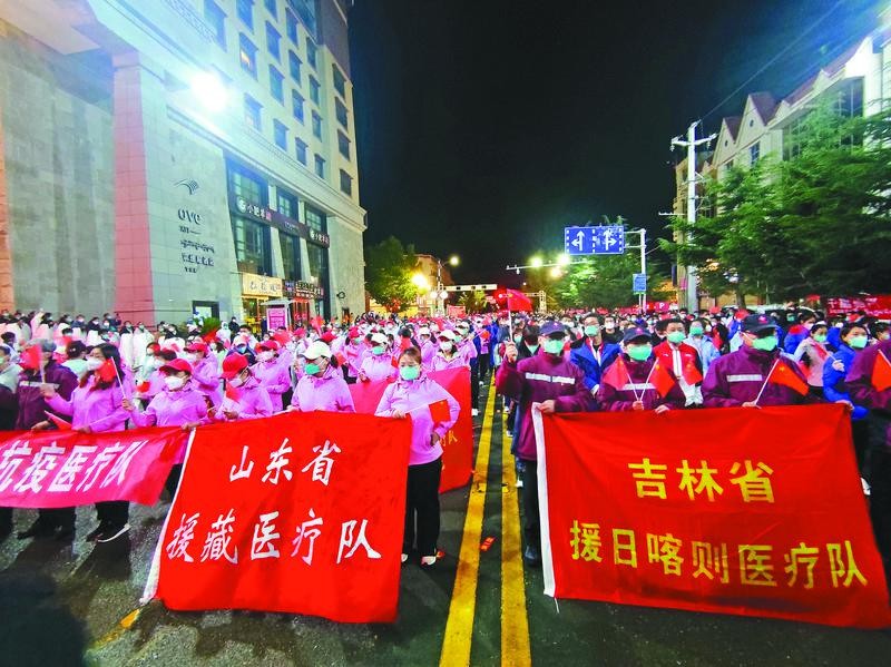 血脈相連、共克時艱。在日喀則市抗擊新冠肺炎疫情的緊要關(guān)頭,山東省委、省政府和吉林省委、省政府第一時間組織支援抗疫醫(yī)療隊,馳援日喀則。全體醫(yī)療隊隊員響應(yīng)組織號召,主動請纓、逆行出征,帶著山東、吉林人民的深情厚誼,以生命守護(hù)生命、以大愛砥礪仁心,苦戰(zhàn)鏖戰(zhàn)40多個日日夜夜,為日喀則奪取抗擊新冠肺炎疫情全面勝利作出了突出貢獻(xiàn)。