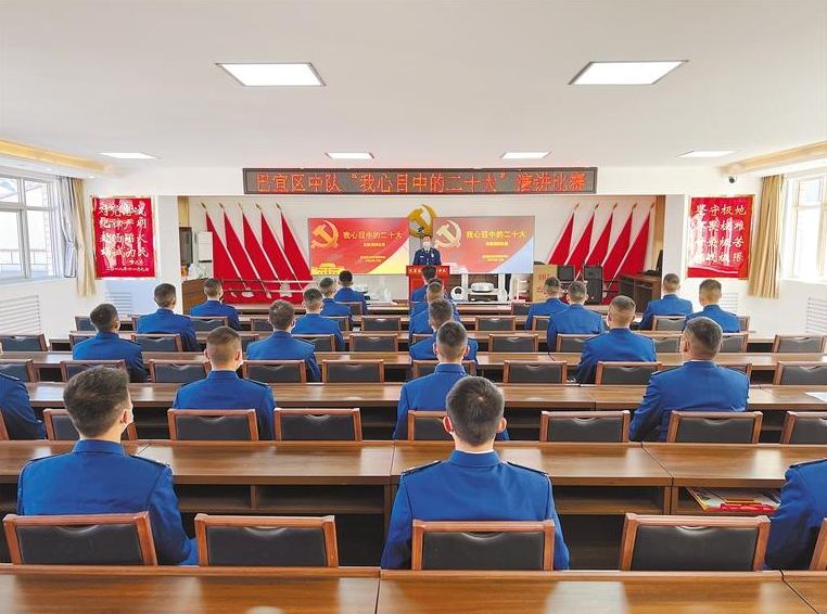 圖為該中隊開展“我心目中的二十大”演講比賽。記者 旦增蘭澤 通訊員 侯杰 李國燾 攝