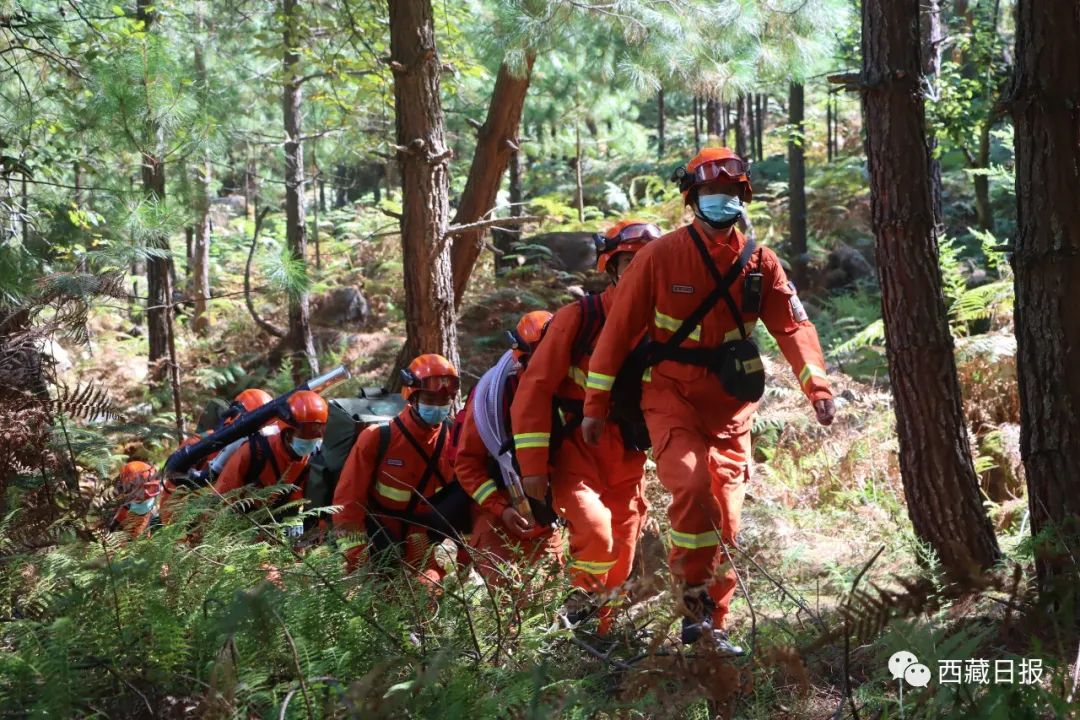 圖為林芝市察隅縣森林消防中隊(duì)攜裝巡護(hù)。