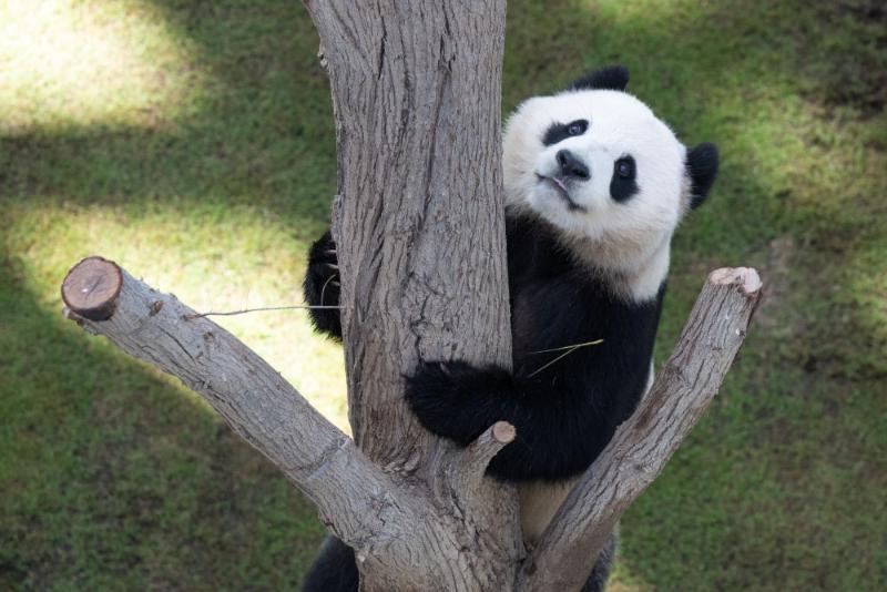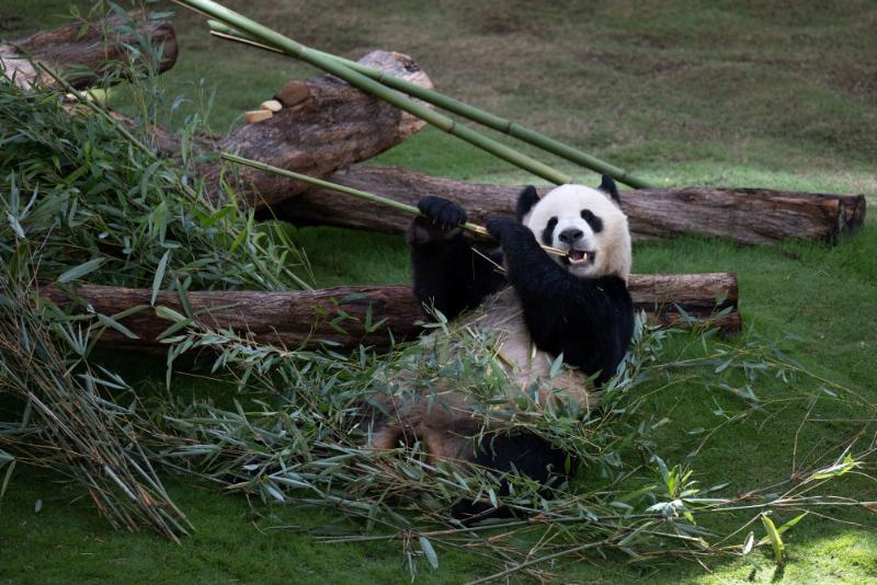 當(dāng)天在豪爾熊貓館,記者看到,兩只熊貓都有自己專屬的生活區(qū),空調(diào)恒溫,涼爽舒適,“京京”一直在吃新鮮的竹子,“四?!眲t更鐘愛爬樹。