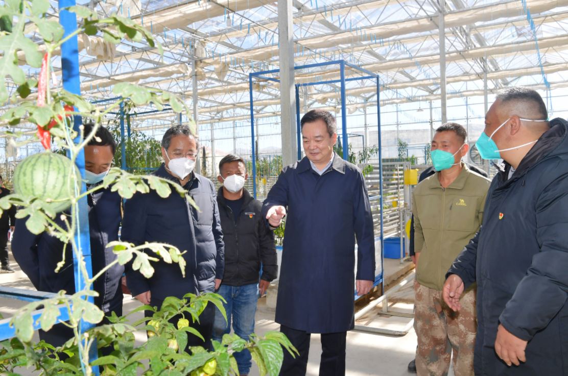11月23日,自治區(qū)黨委書(shū)記王君正來(lái)到拉薩市尼木縣宣講黨的二十大精神并調(diào)研。這是王君正來(lái)到吞彌現(xiàn)代農(nóng)業(yè)產(chǎn)業(yè)園區(qū)了解現(xiàn)代農(nóng)業(yè)發(fā)展情況。記者 旦增西旦 攝