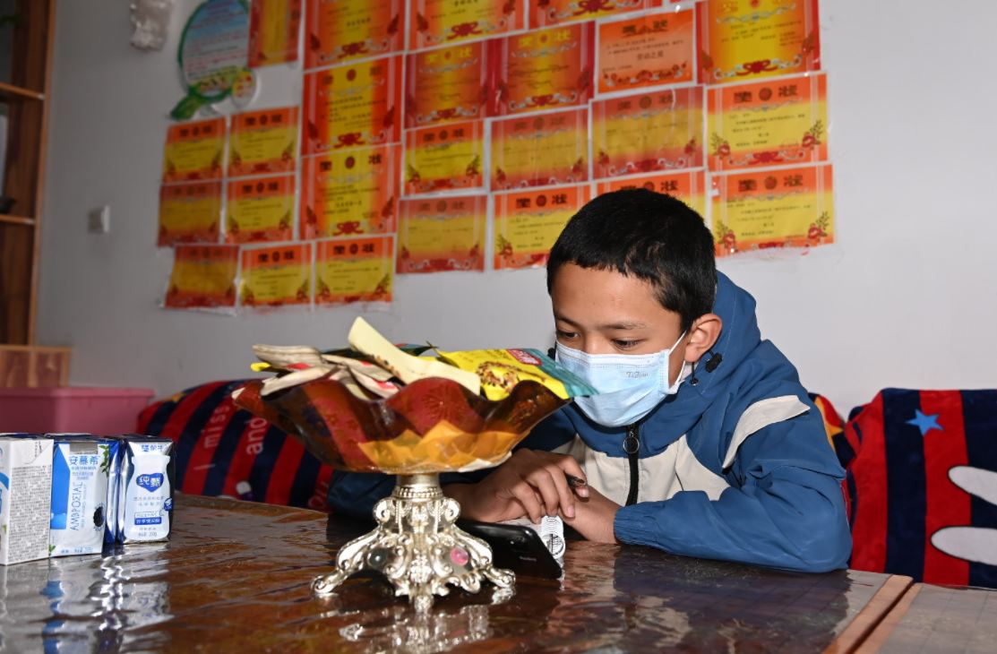 這是西藏兒童福利院的孩子在上網(wǎng)課。記者 旦增西旦 攝