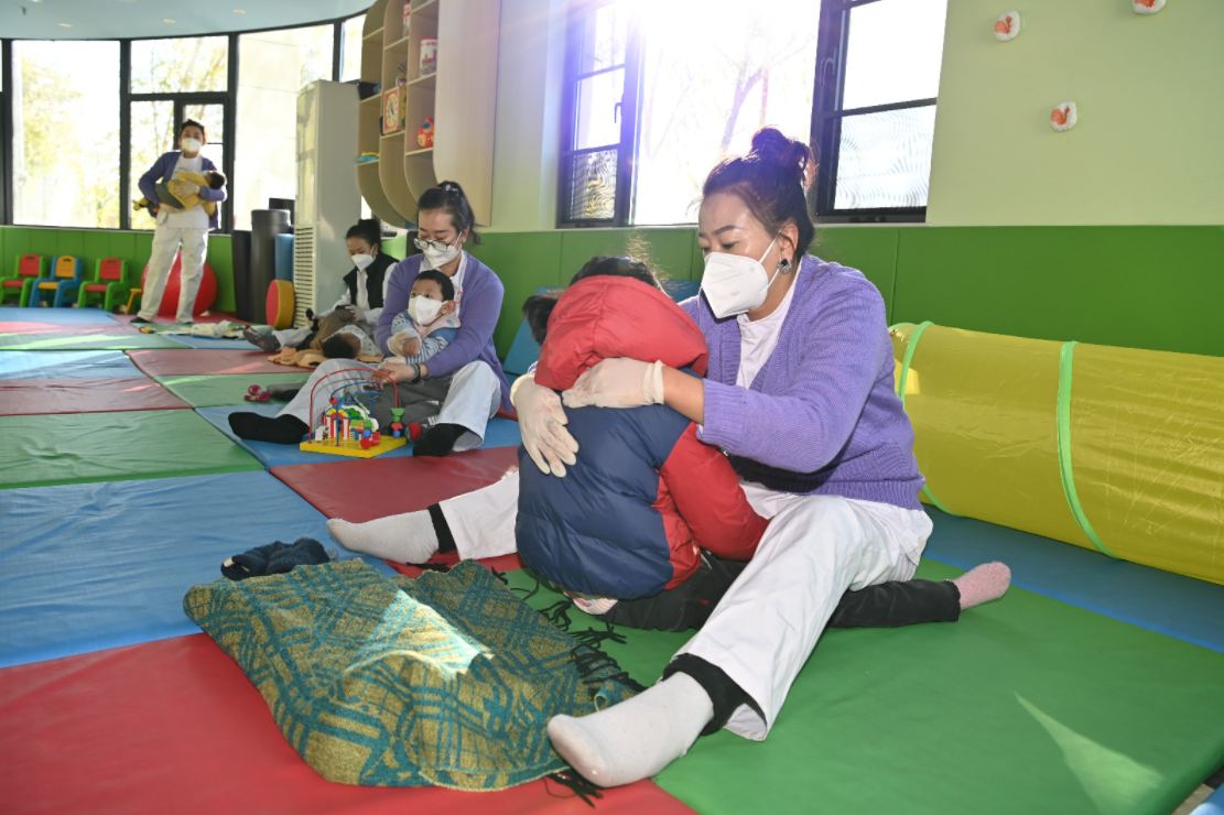 這是自治區(qū)殘疾人康復(fù)服務(wù)中心的工作人員正在為兒童進(jìn)行康復(fù)訓(xùn)練。記者 旦增西旦 攝