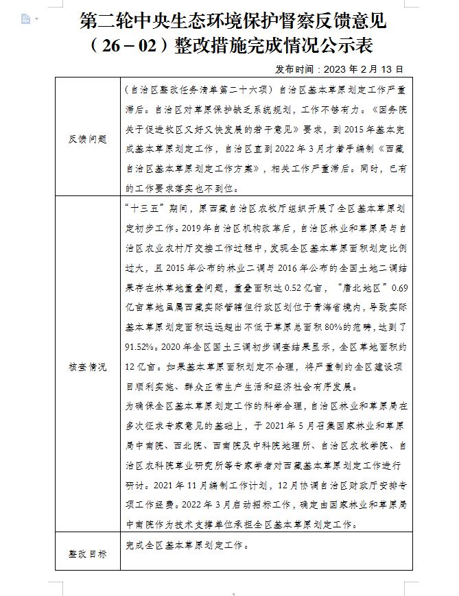 第二輪中央生態(tài)環(huán)境保護(hù)督察反饋意見(jiàn) (26-02)整改措施完成情況公示