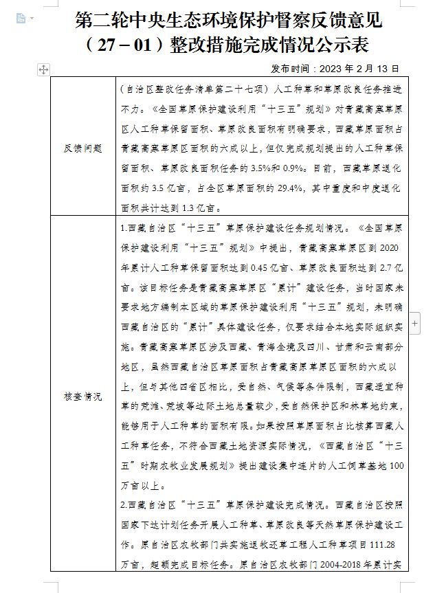 第二輪中央生態(tài)環(huán)境保護(hù)督察反饋意見 (27-01)整改措施完成情況公示