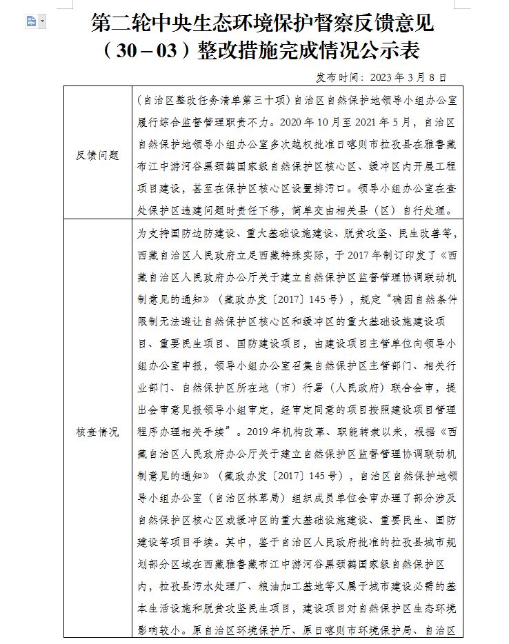 第二輪中央生態(tài)環(huán)境保護督察反饋意見 (30-03)整改措施完成情況公示