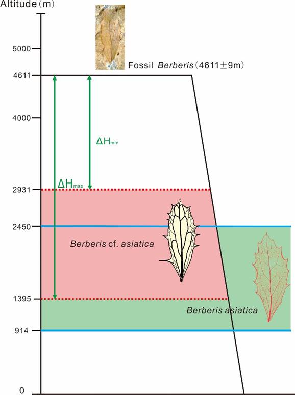中國科學(xué)院植物研究所王宇飛研究組與中國科學(xué)院古脊椎動(dòng)物與古人類研究所鄧濤研究組及英國、奧地利、印度等國專家合作,首次發(fā)現(xiàn)、描述和報(bào)道了在藏北可可西里地區(qū)五道梁盆地(海拔4611±9米)早中新世五道梁組地層發(fā)現(xiàn)的小檗葉化石。研究人員發(fā)現(xiàn)該化石植物的最近親緣種為亞洲小檗,該親緣種植物現(xiàn)今還生活在喜馬拉雅山南坡海拔范圍914-2450米之間的地區(qū)。考慮到全球中新世與今天存在溫度差異,經(jīng)過海拔校正后,研究人員估測藏北可可西里的古海拔在1395-2931米之間,這意味著在過去的17個(gè)百萬年中,該地區(qū)至少抬升了2-3千米。這一發(fā)現(xiàn)不支持先前有關(guān)藏北地區(qū)在中新世之前已抬升甚至超過今天高度的假說。