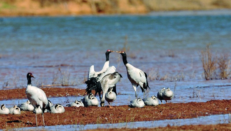 黑頸鶴是世界上現(xiàn)存15種鶴類中最為珍惜的種類,全世界僅存10 000只左右,被列入我國(guó)一級(jí)重點(diǎn)保護(hù)動(dòng)物名錄,同時(shí)還被列為《瀕危野生動(dòng)植物物種國(guó)際貿(mào)易公約》(CITES)附錄一中。黑頸鶴也是所有鶴類中唯一以高原為主要棲息地的種類。雅魯藏布江中游河谷黑頸鶴國(guó)家級(jí)自然保護(hù)區(qū)作為珍惜水禽重要的棲息地、越冬地,保護(hù)價(jià)值非常大。