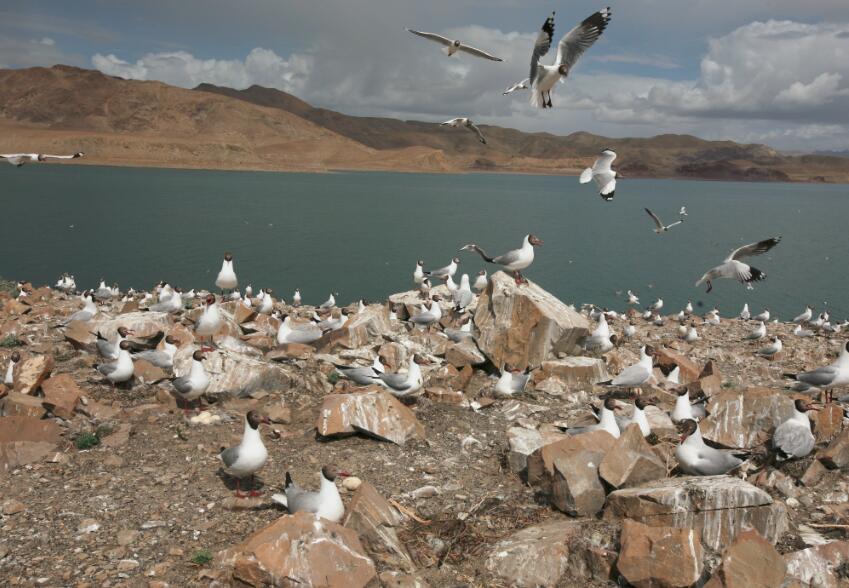 守候了一夜醒來,看見了清晨的班公錯,這是一個鳥兒的世界:迎著晨風(fēng)飛舞的一群群鳥兒歡快地啼叫著,美妙的天籟之音仿佛在為生命歌唱。岸邊的水鳥一群跟著一群,順著湖邊向湖面奔跑而去,紛紛下水,在湖浪里緩緩游動,行成一條長陣。從來沒和這么多鳥如此親近,只恨自己少了一對翅膀,不能與它們一起飛舞。