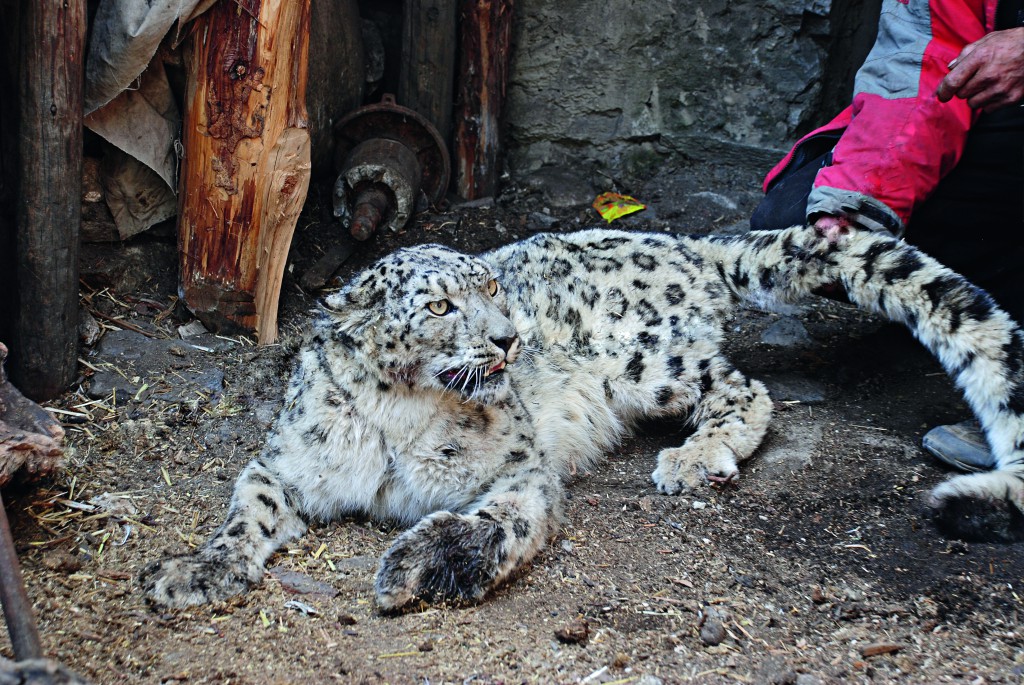春夏之際,常發(fā)生雪豹襲擊牧民家羊群的事。雪豹喝了太多的血,當(dāng)?shù)啬撩裾f雪豹會醉。平日里身手敏捷來去如飛的豹子步履蹣跚,很容易被牧民抓住,然后報(bào)告當(dāng)?shù)亓謽I(yè)局,協(xié)商雪豹放歸和賠償事宜。