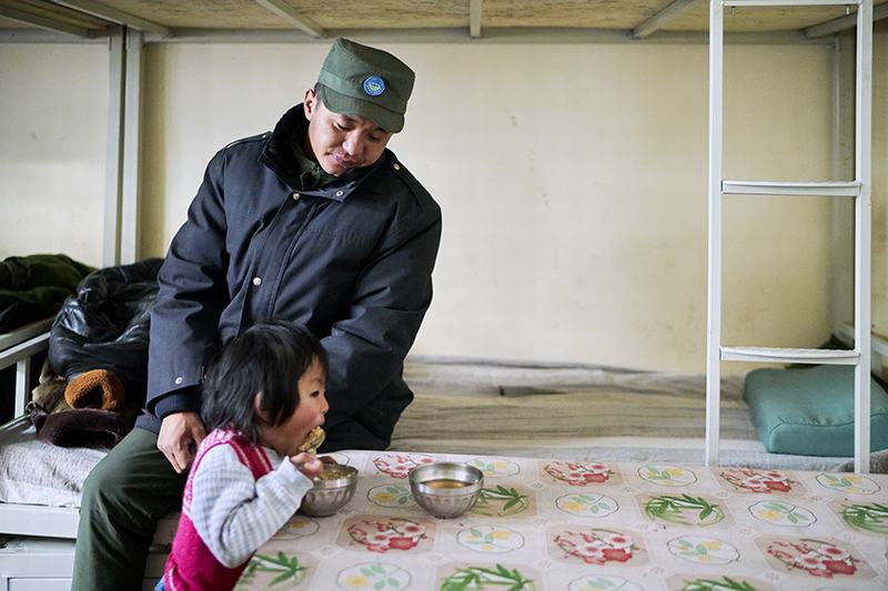 11.達瓦青朱十幾天前被站長桑噶接來陪他,小女孩和野保隊員吃住在一起。桑噶說,快過春節(jié)了,女兒剛來,又準備走了。