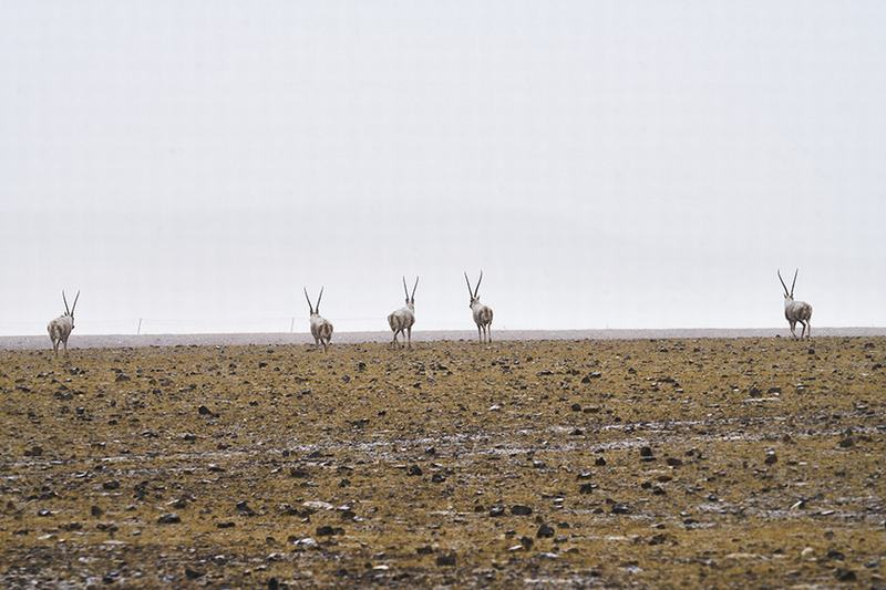 3.藏羚羊是羌塘最常見的動物之一,它們和野牦牛、野驢等食草動物構(gòu)成了無人區(qū)內(nèi)食物鏈的最底層,努力供養(yǎng)著領(lǐng)地上的食肉動物。任何進入羌塘的人,將和他們一樣融入大自然的食物鏈,共同抵抗惡劣環(huán)境施加的威脅。