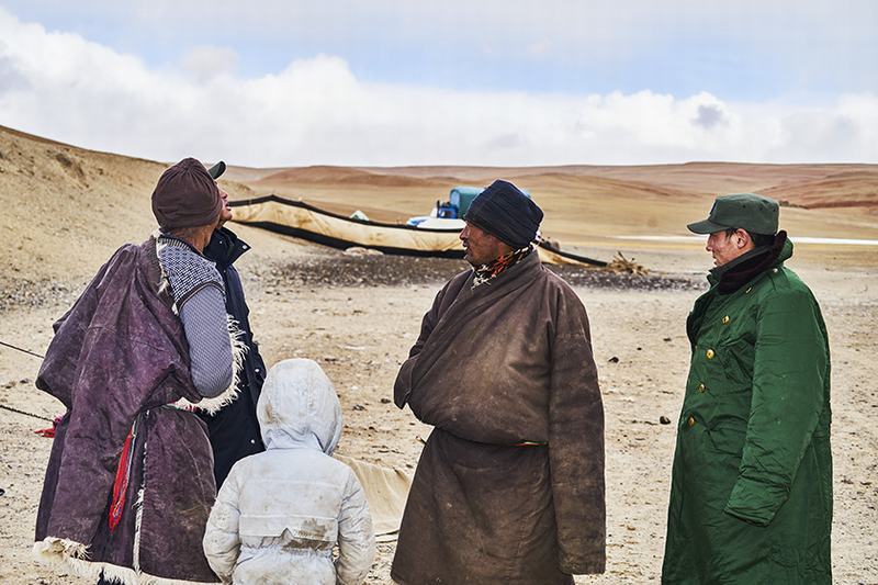 16.游牧者散落在羌塘之中,一般他們會把帳篷扎在靠近水源的山谷里,只有野保隊員對他們的行蹤了如指掌。每當外出巡邏,隊員都要向牧民詢問最近的情況。
