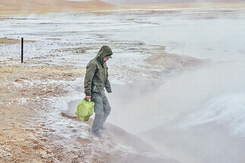9.管理站旁邊有一個溫泉眼,水溫高達近80℃。每天早上,隊員輪流到泉眼邊打水洗臉。隊員說,曾經(jīng)有專家來這里考證,這里的溫泉喝了養(yǎng)胃。