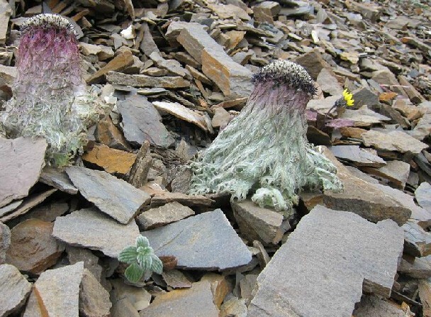 開花的日子,水母雪兔子勾引昆蟲幫著傳粉,蟲子一般會被花的艷色吸引。水母雪兔子頭狀花序呈藍(lán)紫色,艷色的花吸收到更多太陽輻射。而它們的葉片交疊,容易吸收熱量,熱量能很好地幫助花和果成熟,生長期太短了,集中在6到9月,一定要努力長啊長?;ㄐ虮砻姹3忠欢囟?,也方便花和蟲類約會,一個(gè)溫暖的約會,能沖淡被利用的感覺。蟲類回想起來,也是亦真亦幻吧,除了失落,應(yīng)該也有美好。